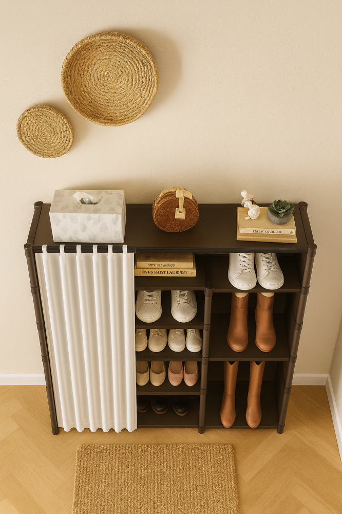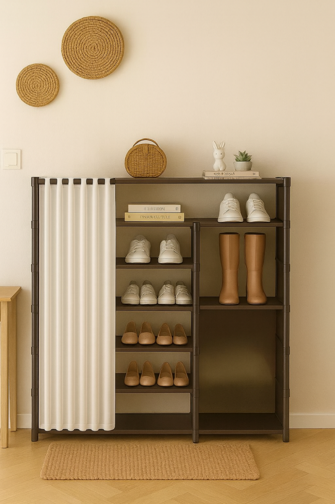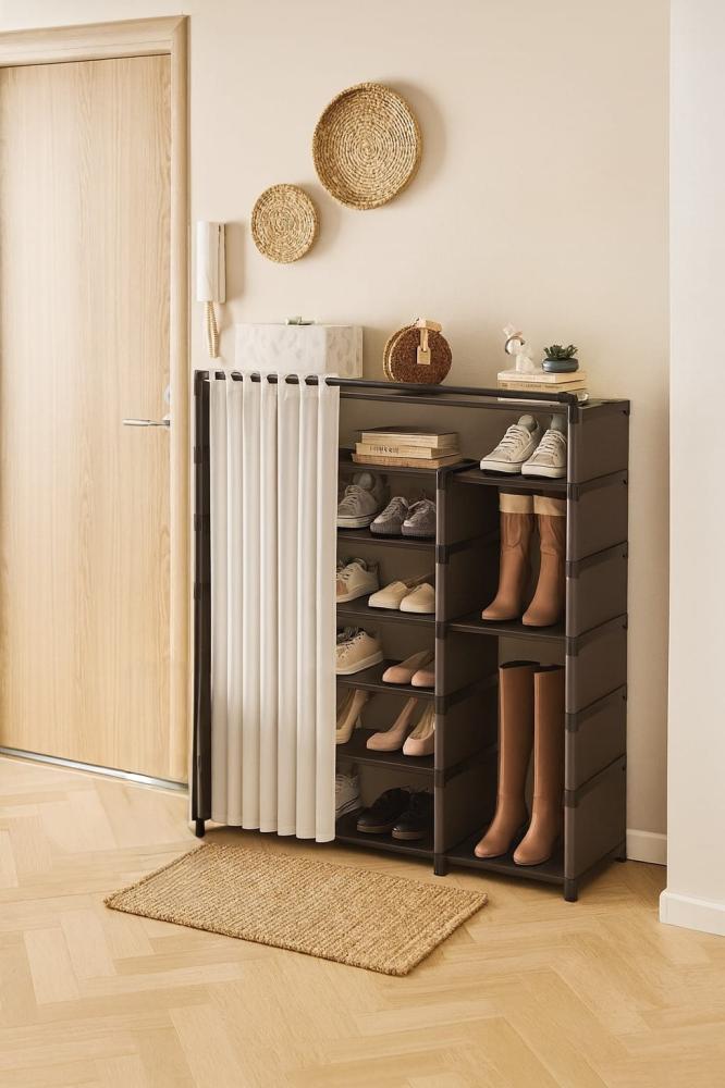 خزانة متعددة الاستخدامات لتخزين الأحذية أو الكتب، بتصميم عصري يجمع بين الأناقة والوظيفة. مصنوعة من الحديد المتين مع 9 مسارات للتخزين، وسهولة في التركيب دون الحاجة لأدوات خاصة.
