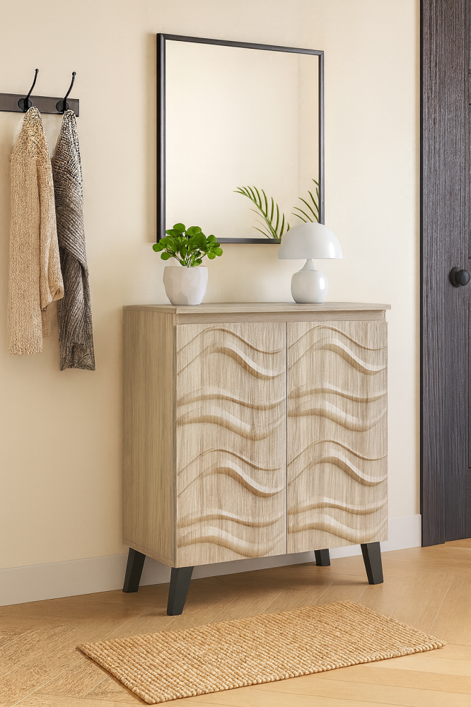 الجزامة المصنوعة من الخشب الماليزي الفاخر تجمع بين المتانة والأناقة، مع2باب أنيقة ومقابض معدنية. تحتوي على رفوف قابلة للتعديل لتخزين الأحذية بشكل منظم، وتناسب جميع أنماط الديكور.