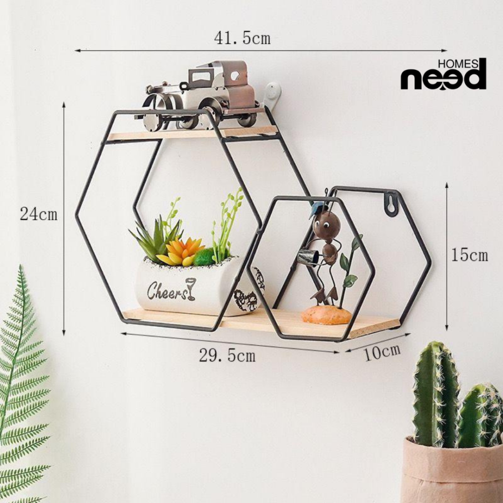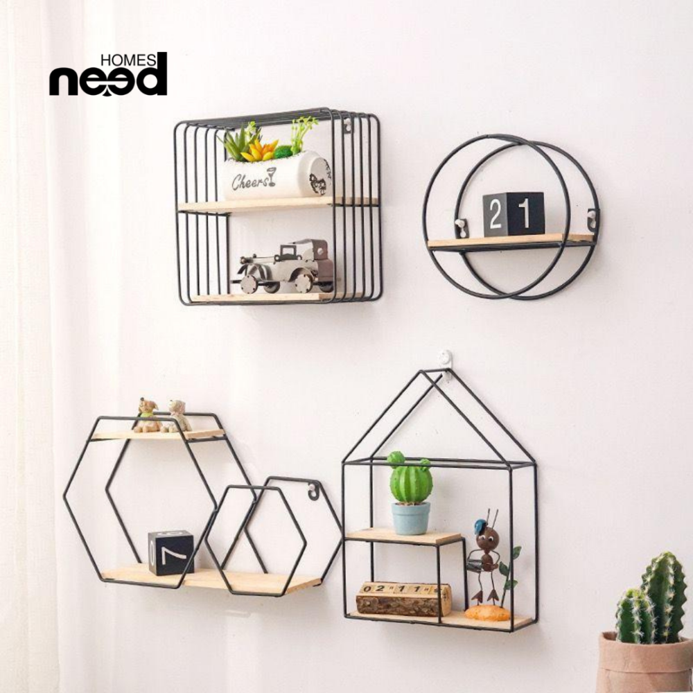 ديكور حائط بتصميم هندسي، عصري مصنوع من المعدن بخامة متينة ولمسة فنية. مثالية لترتيب الإكسسوارات أو النباتات الصغيرة وتضيف لمسة جمالية لأي مساحة.