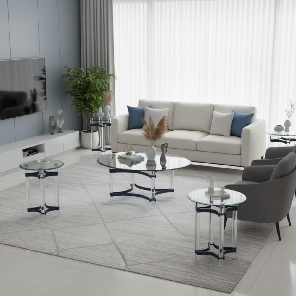 - الاسم: طقم طاولات أكريليك فاخر 5 قطع بتصميم عصري