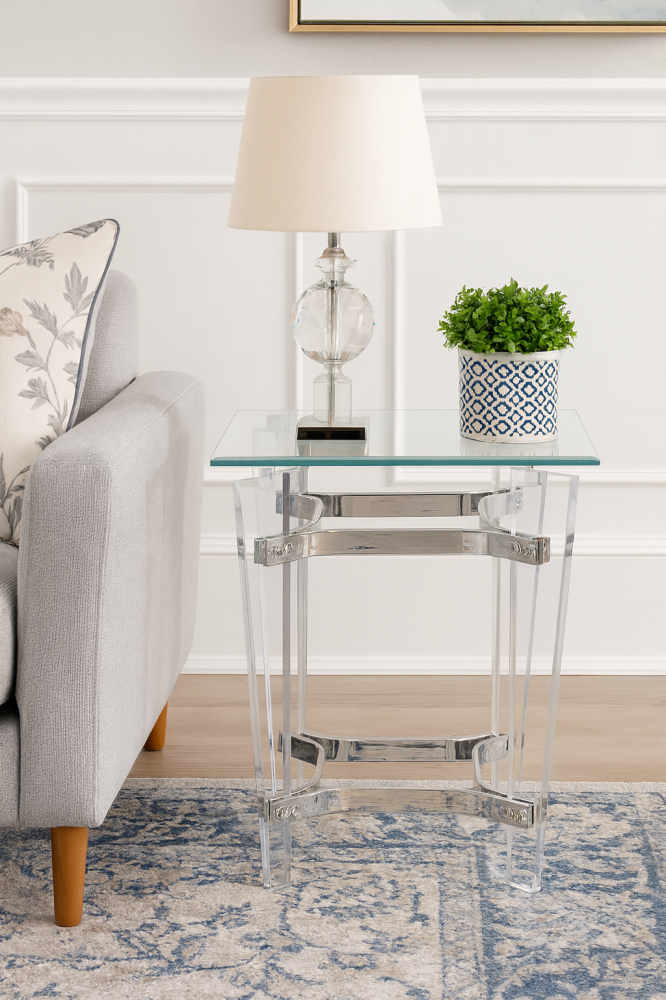 - اسم المنتج: طاولة جانبية مودرن - من ضمن تشكيلة طاولات أكريليك شفاف فاخرة.