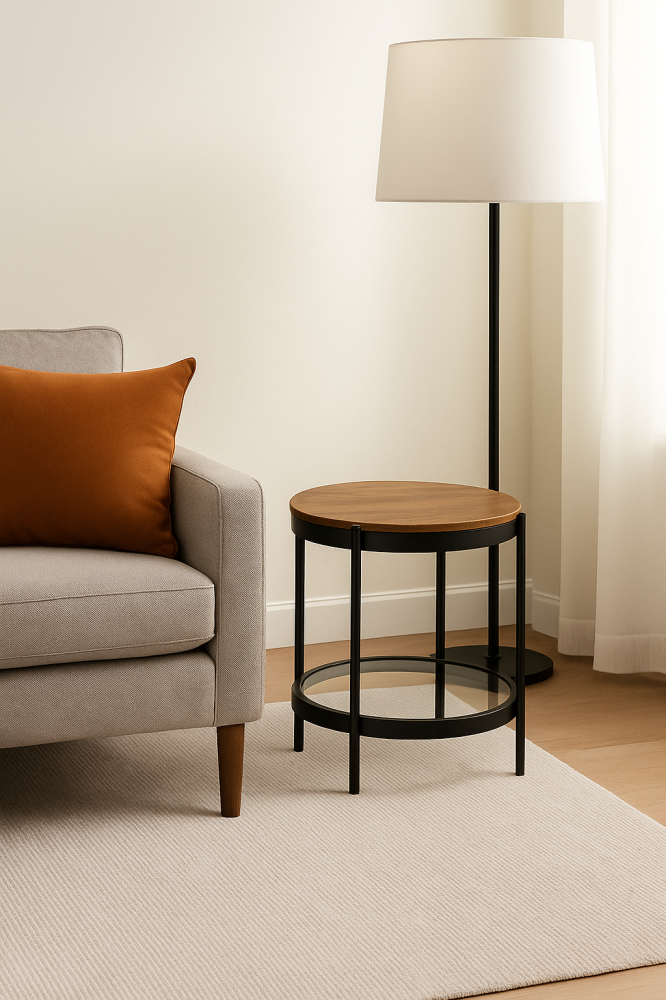 ✨ طاولة جانبية عصرية بتصميم خشبي ومعدني – لمسة أناقة في غرفة معيشتك