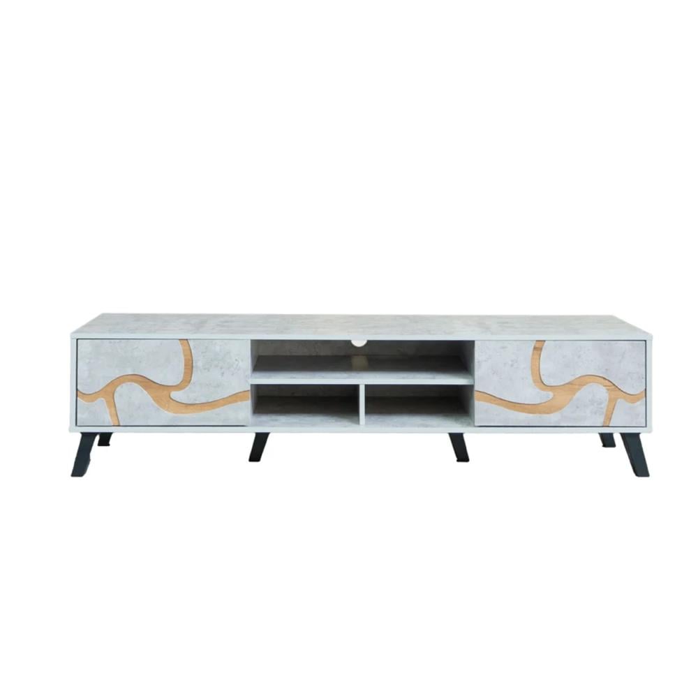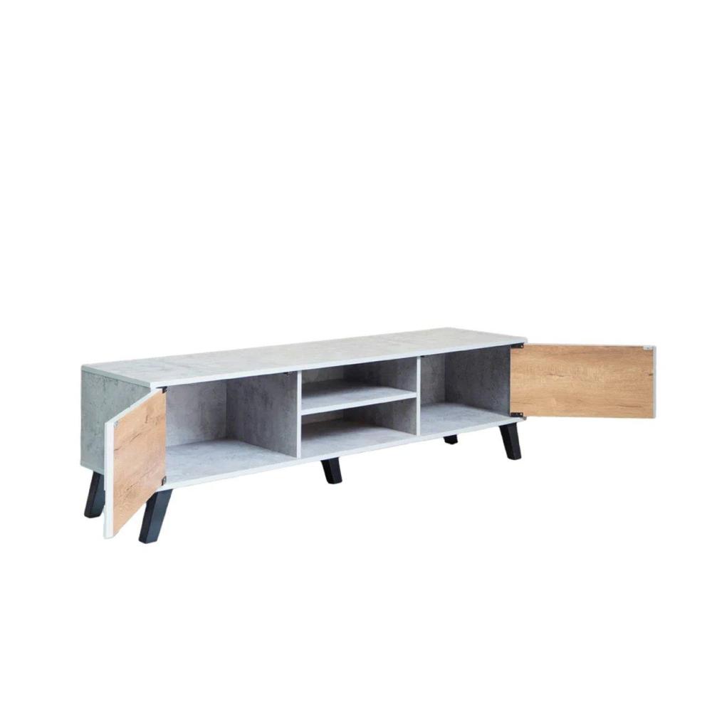 - اسم المنتج طاولة تلفزيون خشب ماليزي – رمادي وخشبي