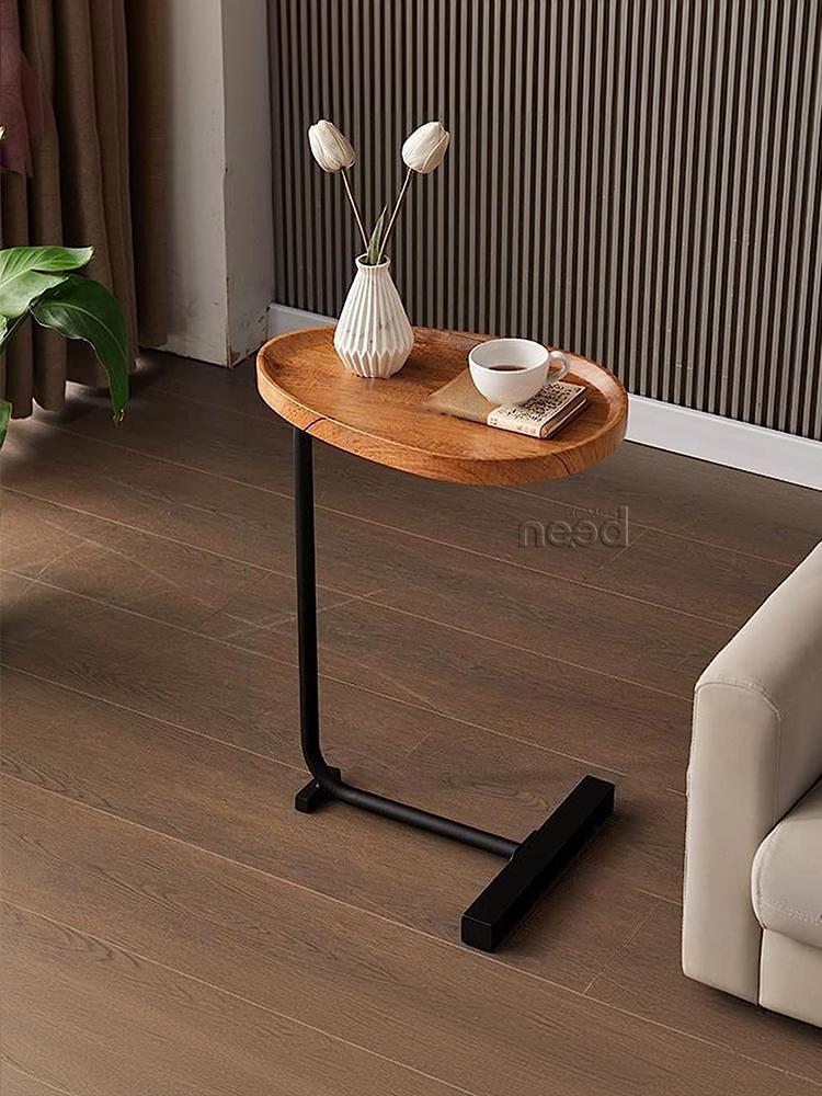 طاولة قهوة حديثة، جانبية عصرية بسيطة من المعدن والخشب على شكل حرف C
