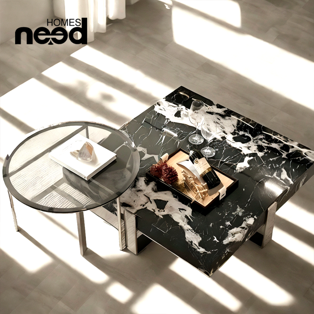 أضيفي لمسة فخمة وعصرية إلى منزلك مع طاولة رخام اسود من هومز نيد. طاولة مزدوجة أنيقة بتصميم يجمع بين الرخام الأسود الفخم والزجاج الشفاف مع قاعدة معدنية لامعة، مثالية لترتيب الديكورات وتوفير المساحة في أي غرفة معيشة.