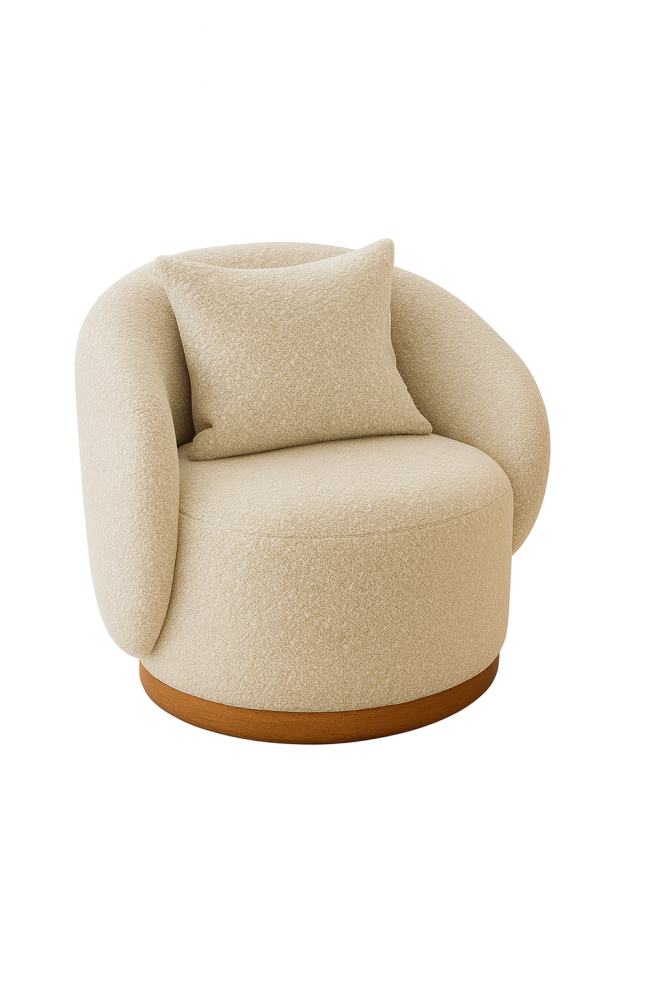 كرسي استرخاء مودرن بتصميم دائري أنيق يجمع بين الفخامة والراحة، مناسب لغرفة المعيشة أو غرف الجلوس الهادئة. يتميز الكرسي بشكل منحني وانسيابي يمنح المكان مظهرًا عصريًا وراقيًا، مع تنجيد فاخر باللون الأبيض يمنحه مظهرًا نظيفًا ومثاليًا لمختلف الديكورات.