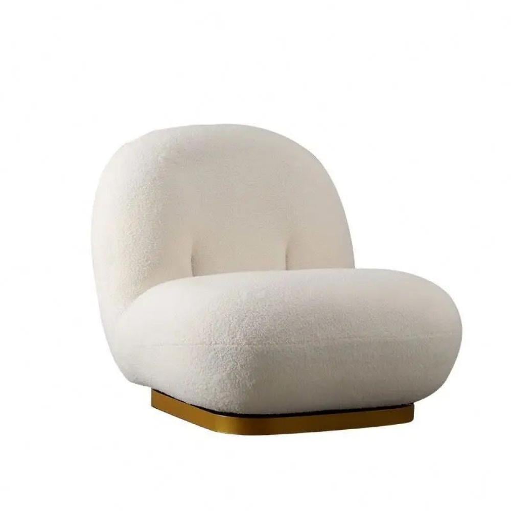 900كرسي مفرد دوّار من قماش البوكلية الأبيض بتصميم عصري وراحة عالية، مصنوع من المعدن المنسجم مع التنجيد الفاخر، مثالي لغرف المعيشة أو الزوايا الهادئة.
