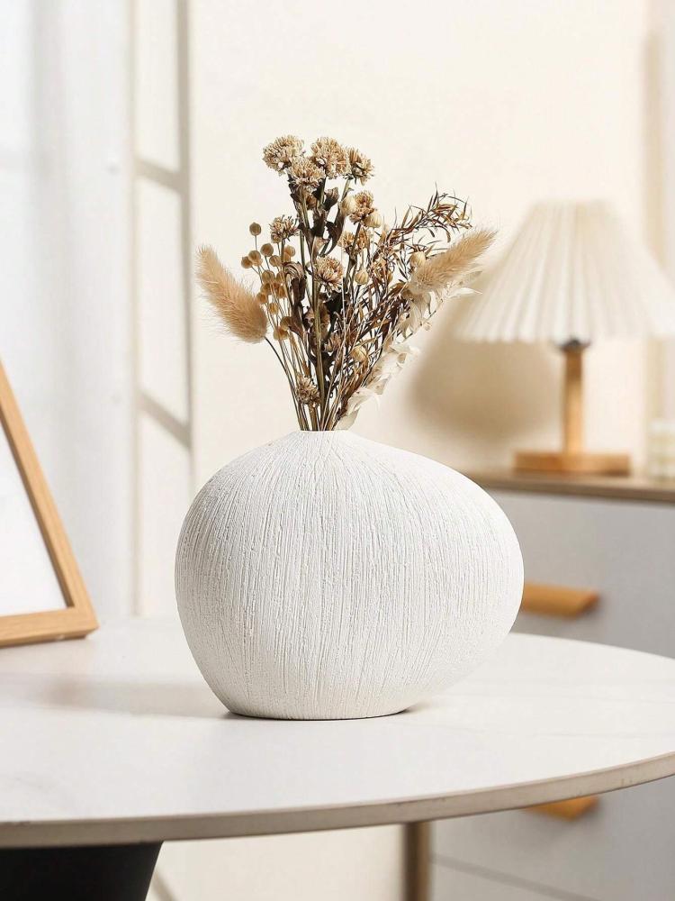 مزهرية سيراميك بيضاء بسيطة مصنوعة يدويًا على الطراز الاسكندنافي